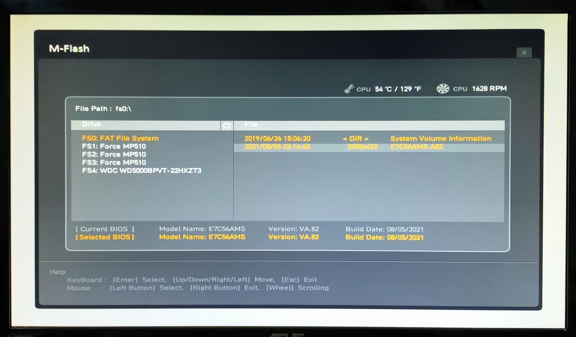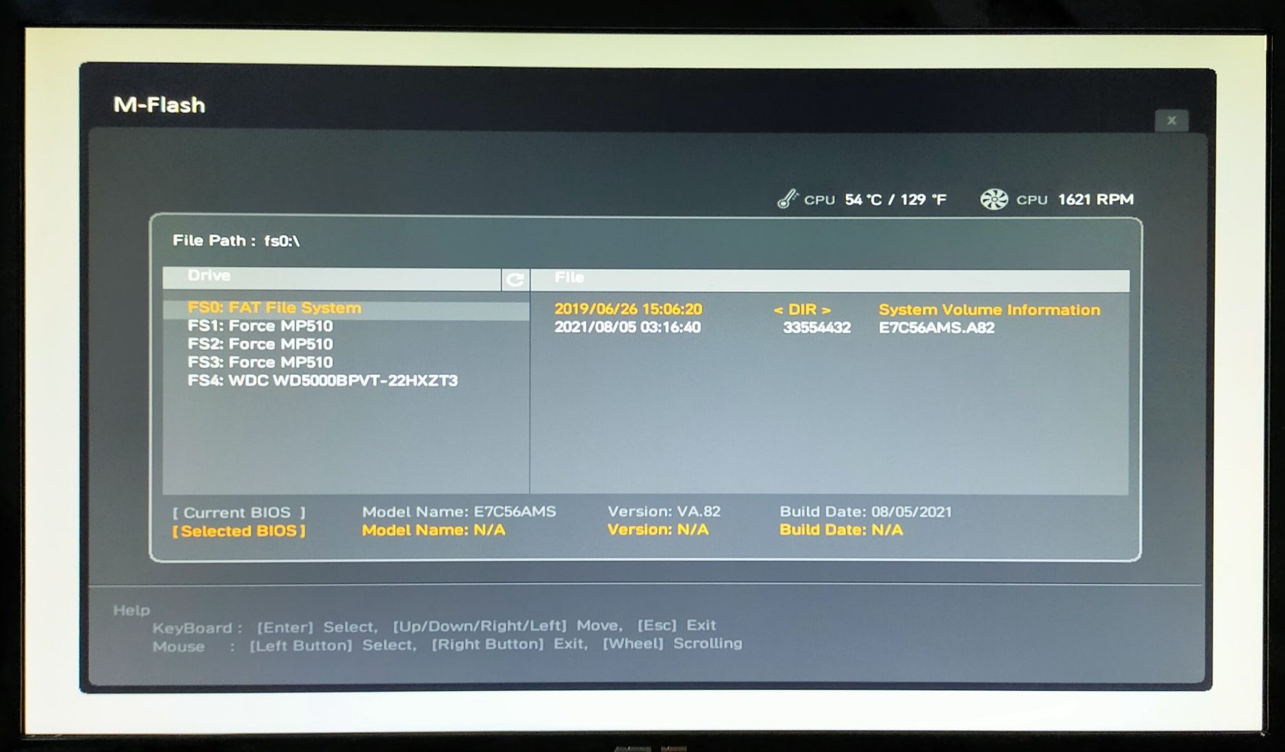 Okey, avviato il sistema con M-Flash scegliamo la chiavetta con il nostra file con le frecce direzionali e confermare con Invio.