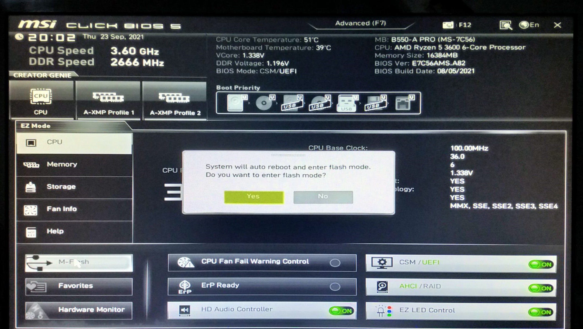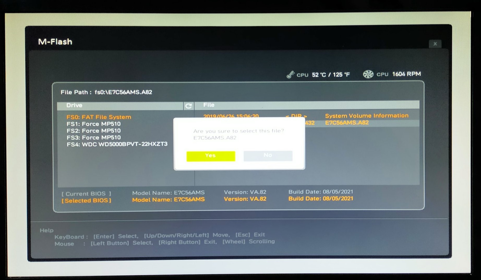 Dopo aver spostato il nostro file sulla chiavetta, Riavvia il computer. All'accessione premi il tasto DEL sulla tastiera sopra le frecce direzionali. All'apparire del BIOS scegliere M-Flash Nel menu in basso a sinistra e confermare di riavviare il pc con la modalità M-Flash.