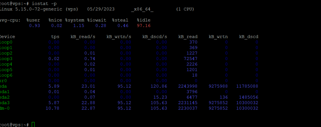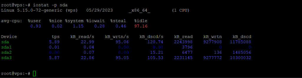 # iostat -p [Device_Name] # iostat -p sda