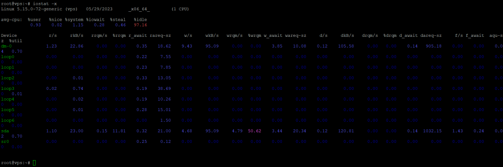Consiglierei di controllare il wa campo nell'output del comando in alto per capire se sono presenti operazioni di lettura e scrittura di I/O elevate sui dispositivi di archiviazione e sulle partizioni (come unità disco rigido, SSD e partizioni del disco).
