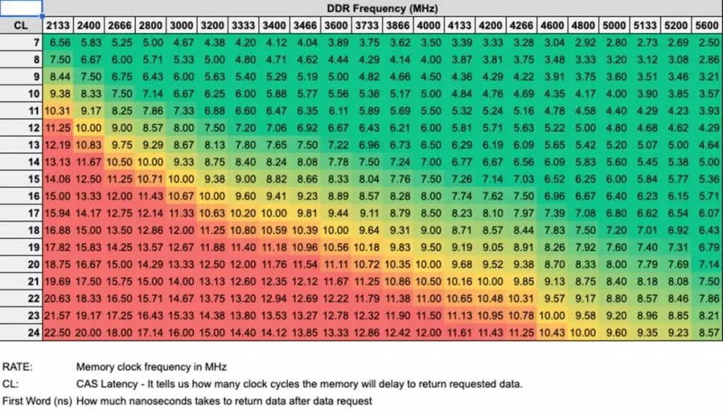 Come puoi vedere dalla tabella, la stessa capacità e velocità della Ram possono avere un CL diverso. Tuttavia, il CL inferiore porta ad una maggior velocità di accesso ai dati, come si può notare dallo speedtest della Ram.