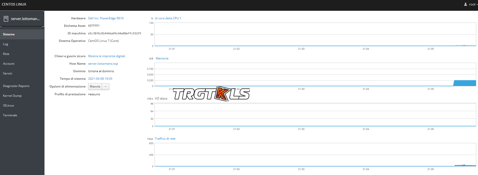 In fine "https://(nome del server o indirizzo IP):9090/", verrà visualizzato il modulo di login del cockpit. Accedi con le credenziali Root.