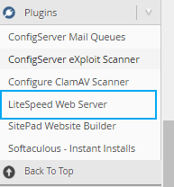 2: Dovresti scorrere il menu in basso a sinistra e accedere al plug-in LiteSpeed Web Server nella sezione Plugin (Vedi Foto)