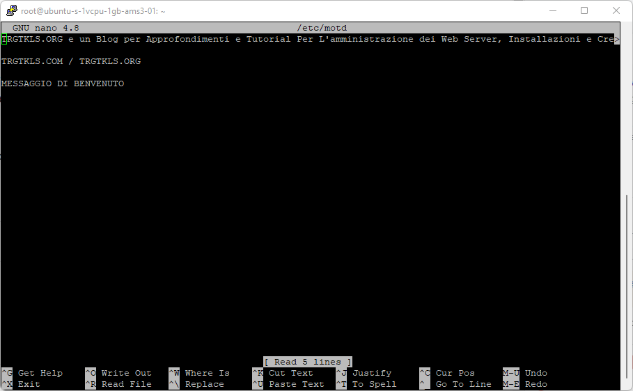 Potremmo voler aggiungere un messaggio di benvenuto a SSH, dove gestiamo costantemente la nostra attività sulla piattaforma Linux. Possiamo far apparire qualsiasi testo che vogliamo come schermata iniziale ogni volta che accediamo a ssh.