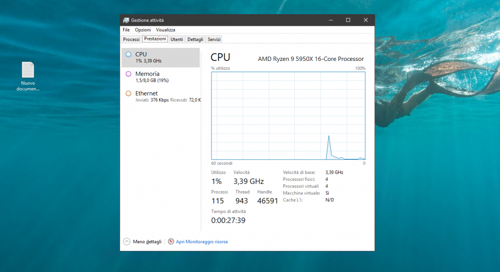 Tasto Windows + X -> seleziona Gestione attività