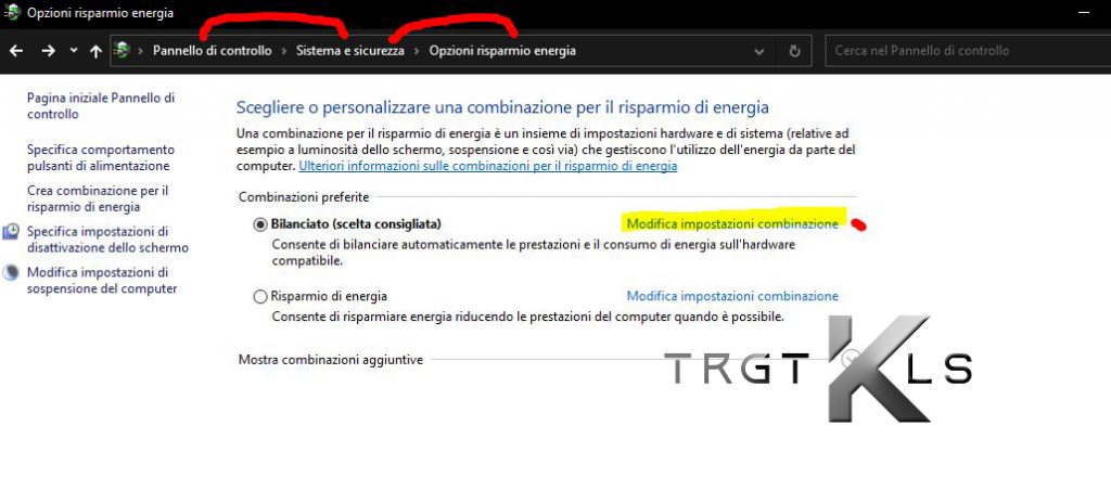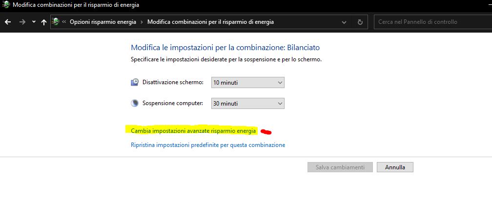 Pannello di controllo -> Sistema e sicurezza -> Opzioni risparmio energia