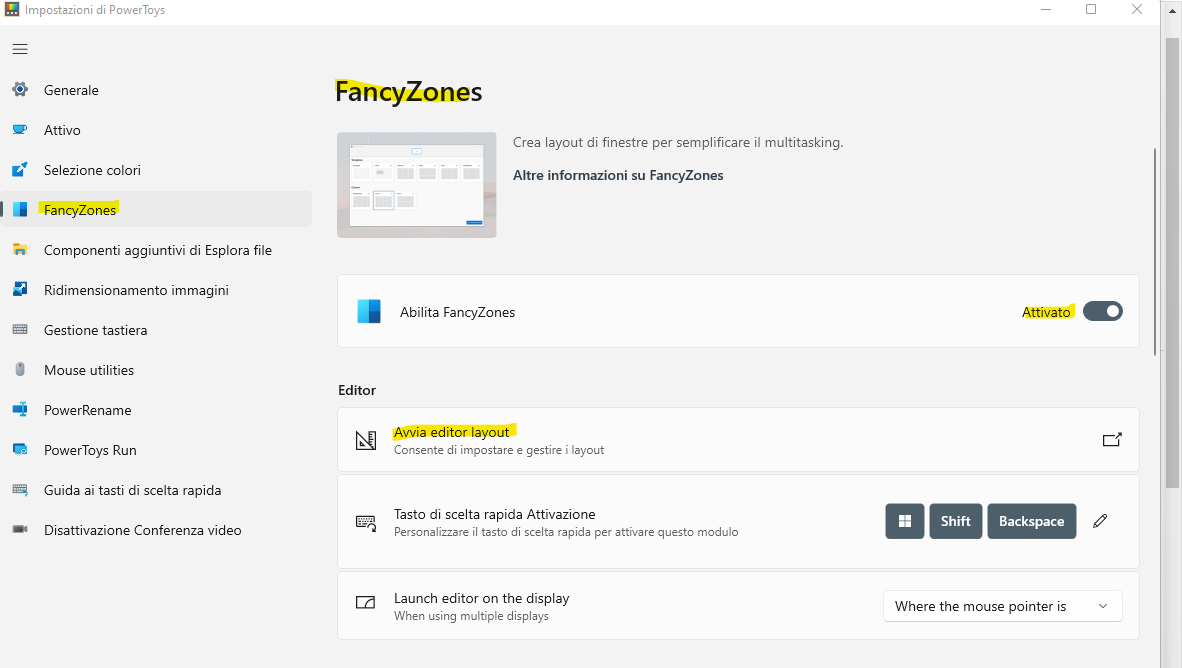 Scarica e Installa PowerToys, avvia l'app e trova la sezione denominata FancyZone.
