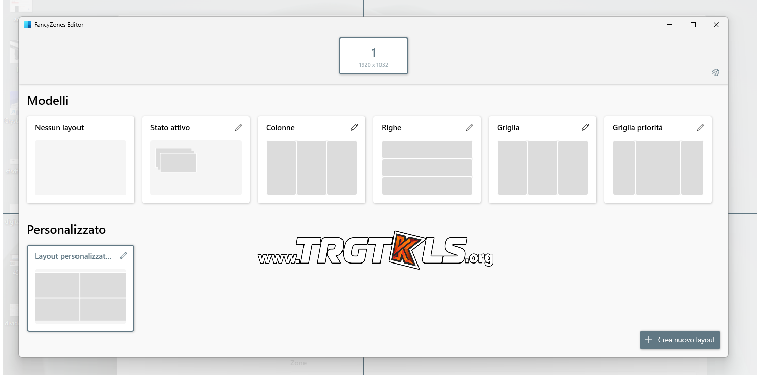 Clicca avvia editor layout per avviare e personalizzare il tuo schermo.