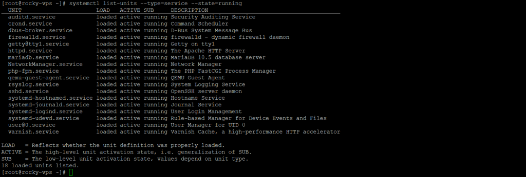 # systemctl list-units --type=service --state=running
