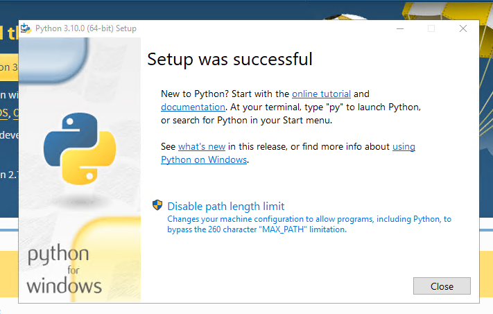 Clicca su Disable Path Length Limit e procedi per cliccare Close.