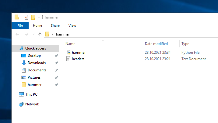 Copiate l'intero testo dei file, e incollate su un documento di testo per poi salvare come hammer.py e headers.txt