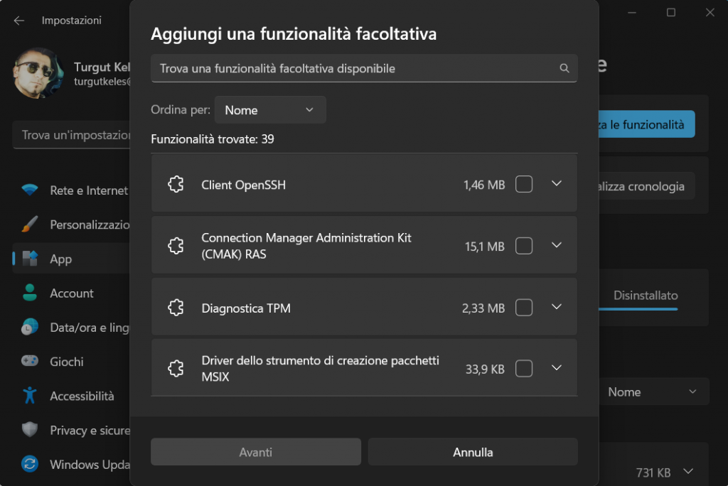 Se la "ssh-keygen" command non è disponibile, dovrai installarlo manualmente da Impostazioni > App > Caratteristiche opzionali. Nelle impostazioni, fare clic su "Visualizza funzionalità" pulsante, cerca "Cliente OpenSSH", e selezionare l'opzione, quindi fare clic su "Prossimo" e clicca su "Installa".