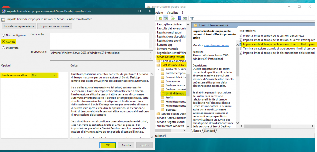Questo è tutto! Non appena si fa clic su Applica, le nuove impostazioni verranno salvate: d'ora in poi, tutte le sessioni di Desktop remoto appena inizializzate verranno disconnesse dopo il periodo di tempo specificato.