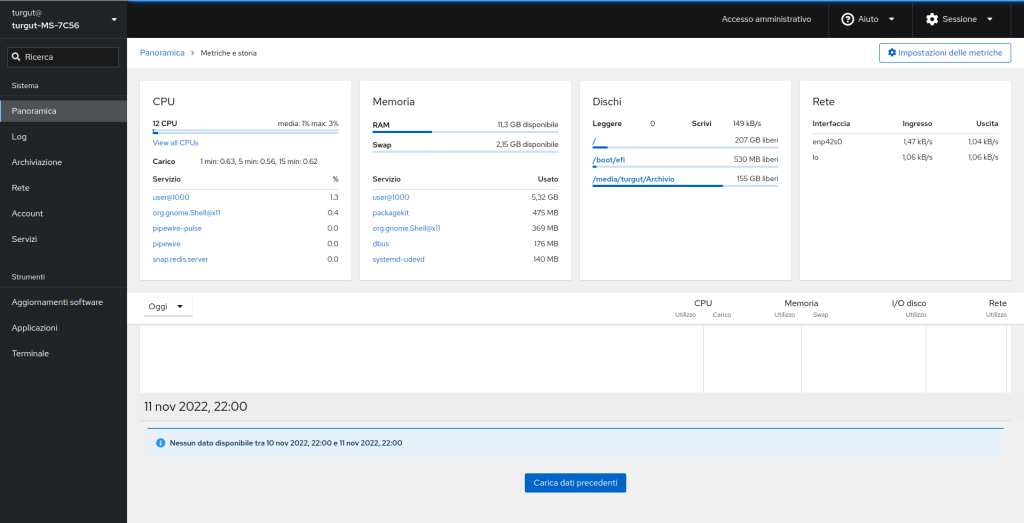 Cockpit consente di amministrare il tuo server da un browser ed eseguire attività di sistema. Con Cockpit puoi avviare container, amministrare lo storage, configurare reti e ispezionare i log. Questo strumento è abbastanza amichevole per i nuovi utenti di Linux e utile anche per gli amministratori esperti.