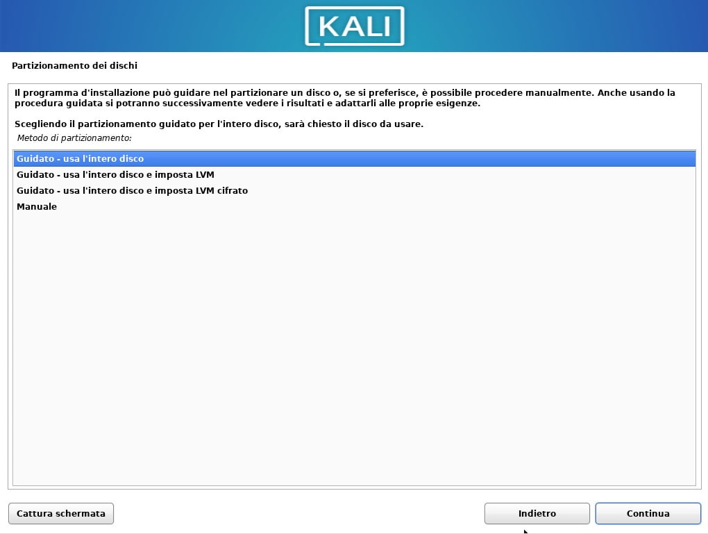 Seleziona il metodo di installazione grafica, consigliato per i nuovi utenti.