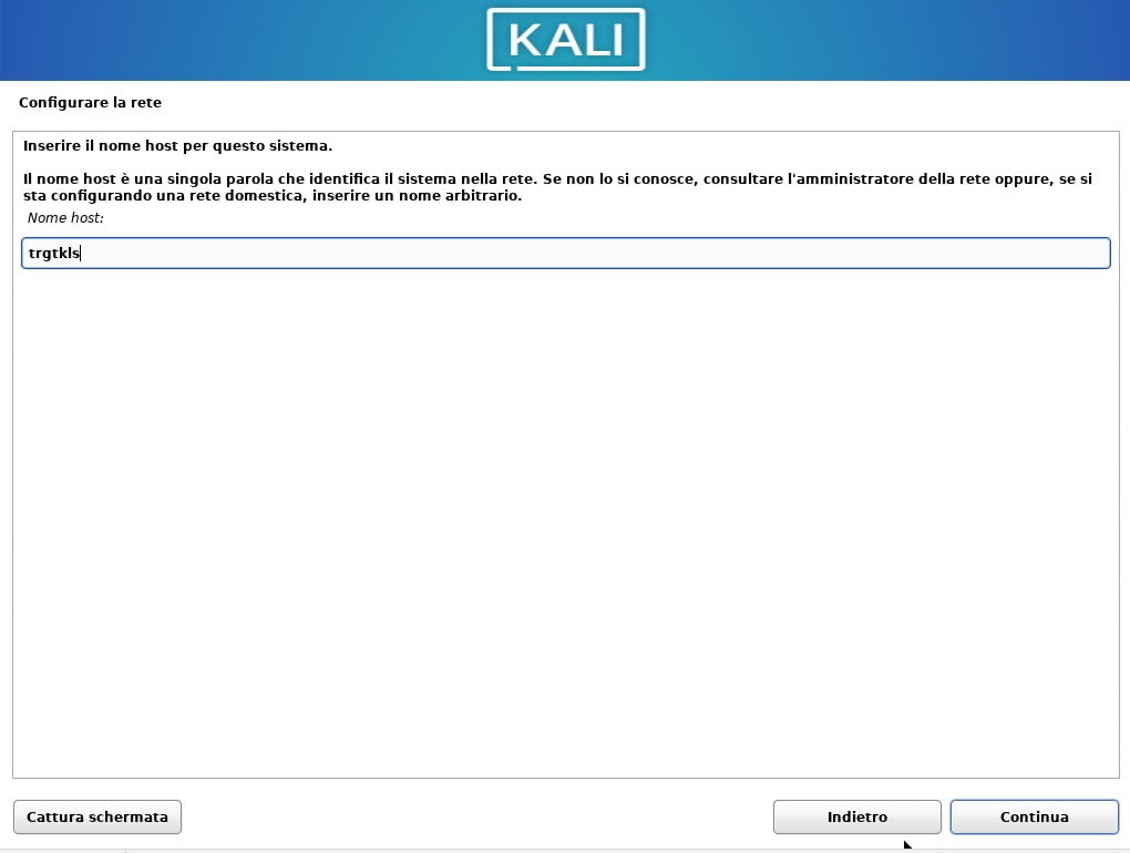 Attendi il caricamento dei componenti di installazione, di seguito Imposta il nome host della tua macchina.