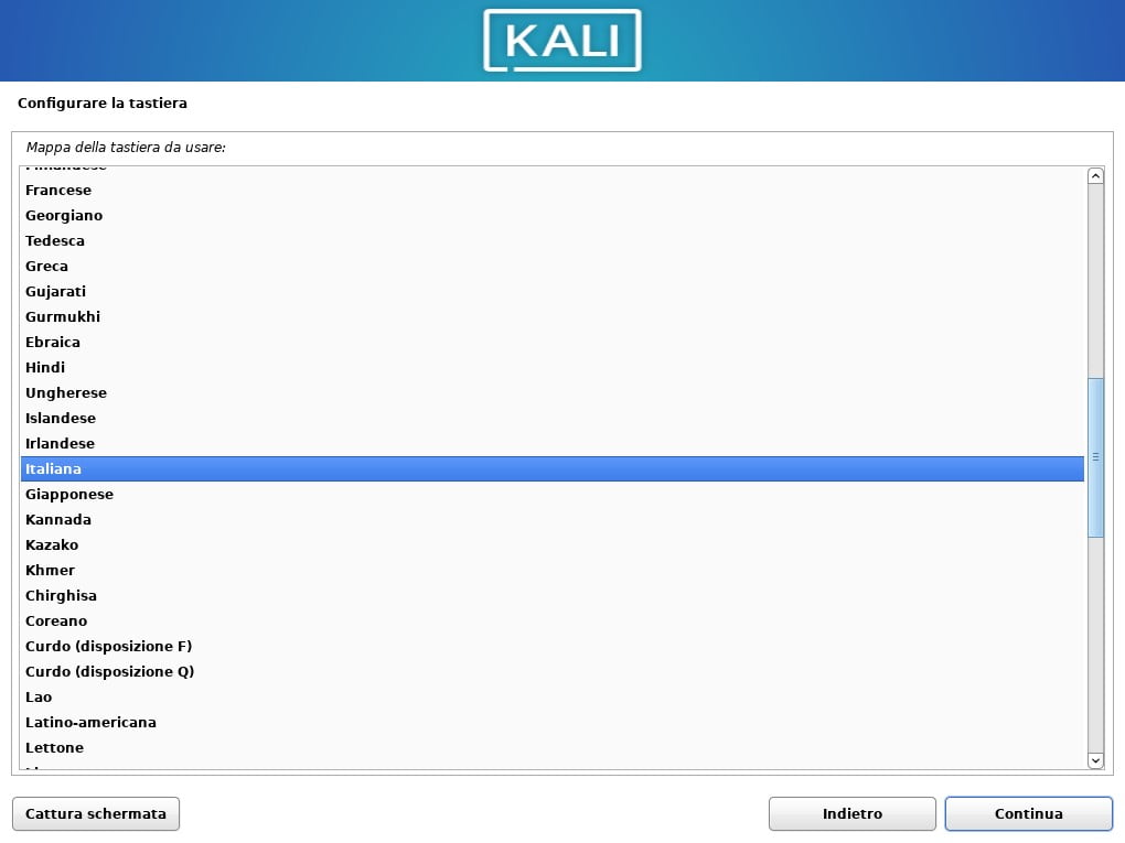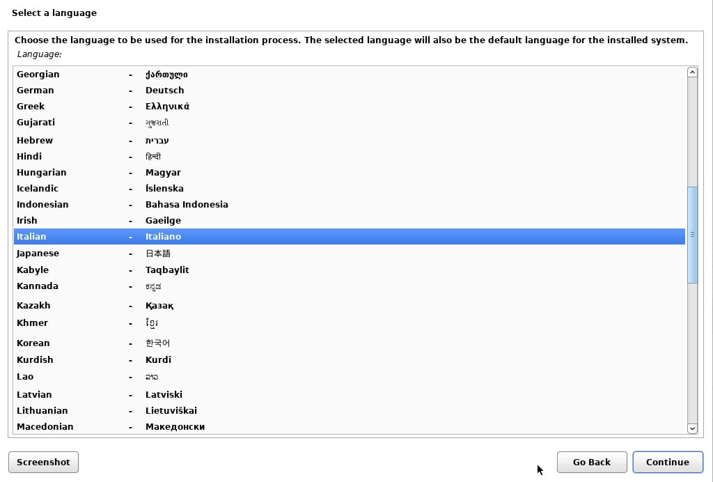 Scegli la lingua da utilizzare durante il processo di installazione.