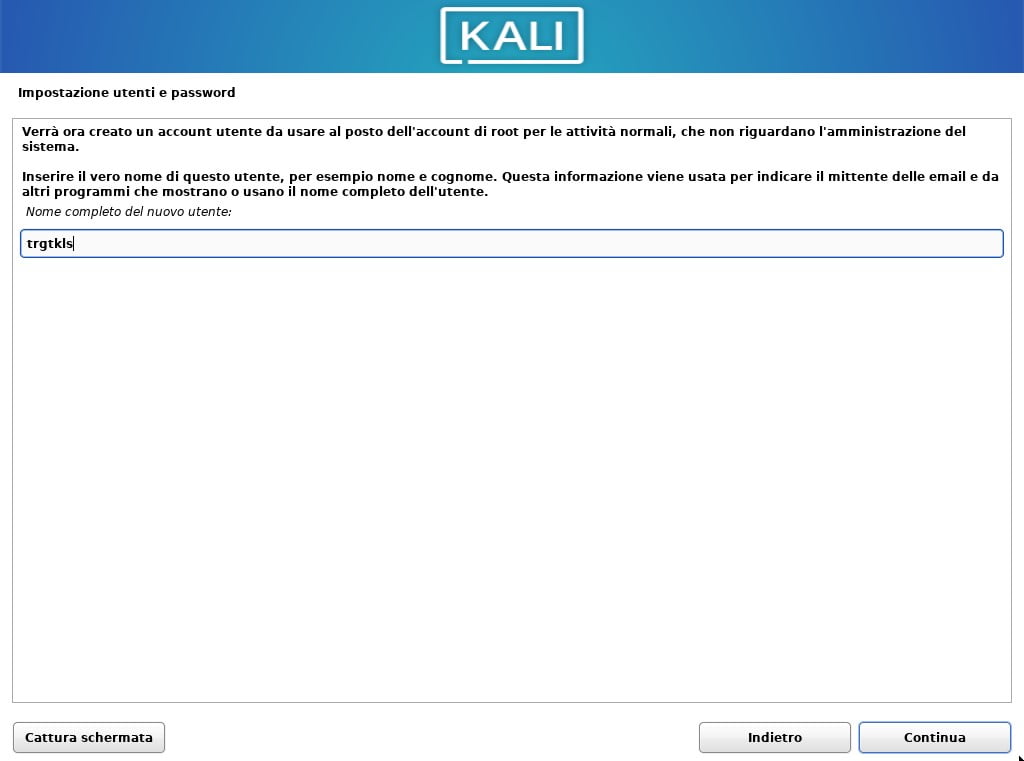 Digita e crea un utente per attività non amministrative: imposta nome completo e nome utente poi Imposta la password per l'utente.