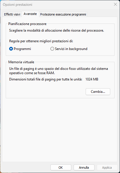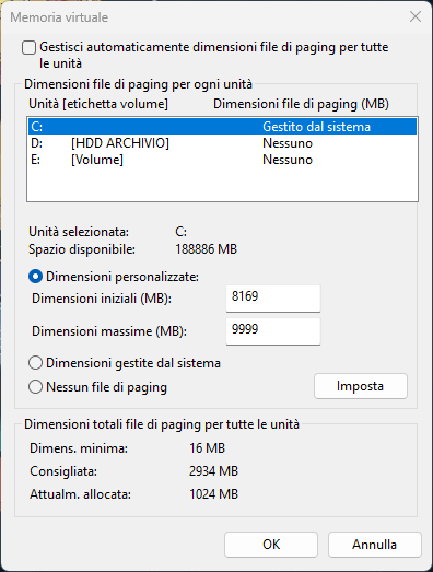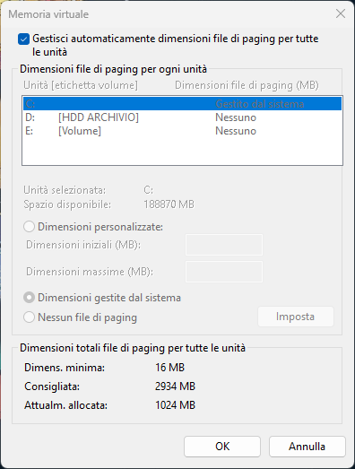 Modificare la dimensione della memoria virtuale (file di paging) per Windows 11 o 10