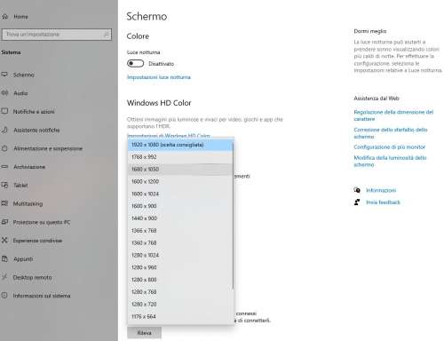 Come modificare la risoluzione dello schermo in Windows 10?