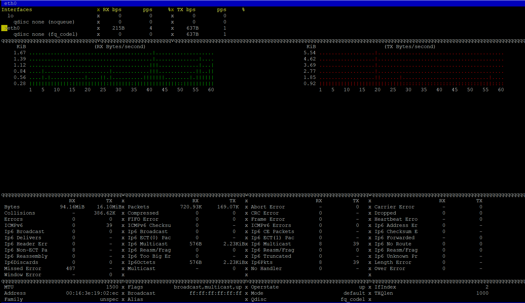 Nota: è possibile verificare tra le interfacce di rete utilizzando i tasti freccia. Per chiudere l'uscita, premere 'Q'. Premere 'D' per abilitare le statistiche dettagliate e premere 'i' per consentire ulteriori informazioni.