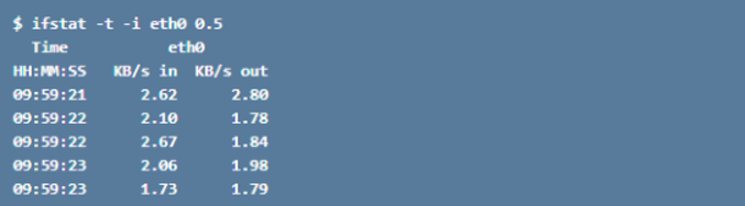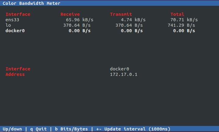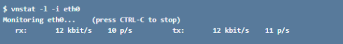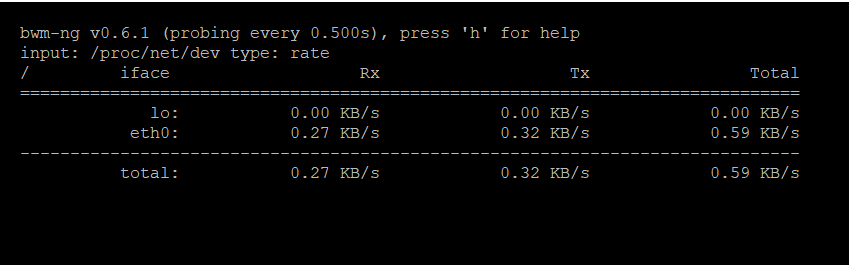 Questo è lo strumento da riga di comando più semplice che visualizza il volume del traffico attraverso un'interfaccia di rete intuitiva all'interno del sistema. Mostra solo le statistiche del traffico, che vengono aggiornate in tempo reale.