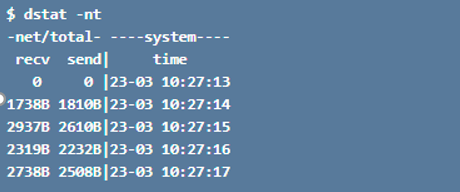 Questo strumento è scritto in Python e consente di monitorare diverse statistiche di sistema e creare un report in modalità batch. Può anche registrare i dati in un formato di file CSV. Utilizza il comando seguente per installare dstat su Ubuntu o Debian.