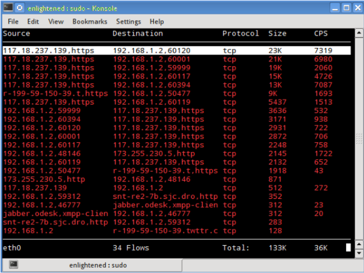 Si tratta di un monitor LAN IP interattivo che mostra le singole connessioni e il flusso di trasferimento dei dati tra gli host. Utilizzare i comandi seguenti per installare.