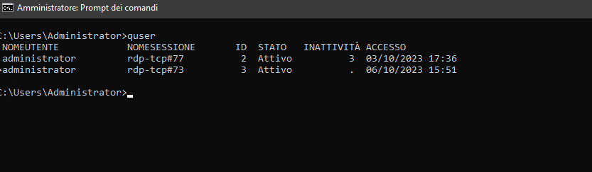 Digita quser e premi Invio. Mostrerà l'elenco di tutti gli utenti attualmente connessi al tuo computer/server.