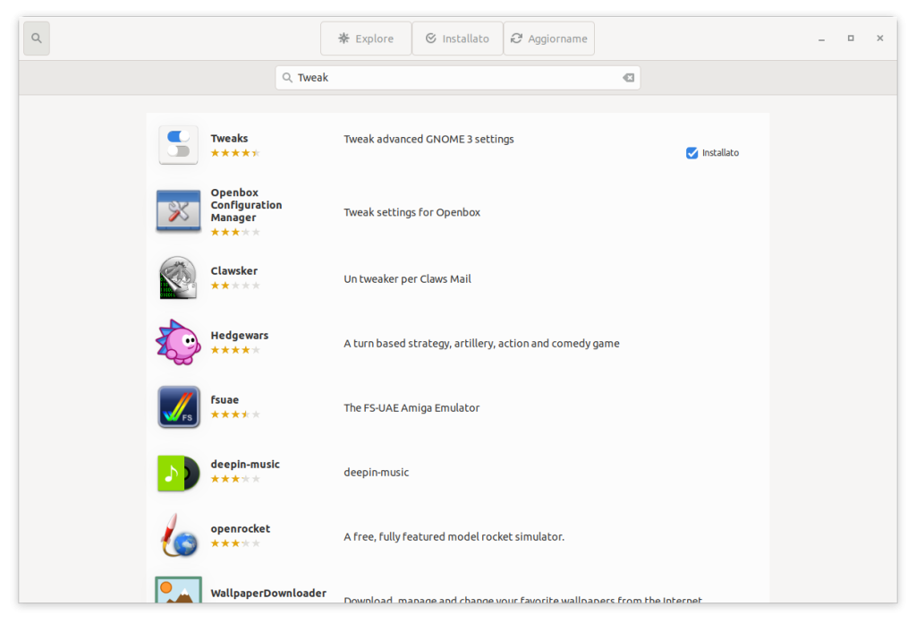 I contenuti che abbiamo descritto di sopra sono le impostazioni e personalizzazioni basilari, ora vediamo come installare un tema a piacimento. Io per questo tutorial utilizzerò Orchis Theme. Innanzi tutto vai su Ubuntu Software e scaricare Tweak.