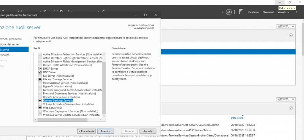 Per rimuovere ruoli e funzionalità in Windows Server, procedere come segue: