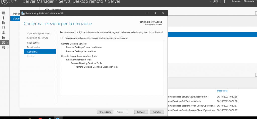 Windows Server ora rimuoverà la funzionalità/ruolo selezionato e il server potrebbe riavviarsi al termine del processo di rimozione. Riceverai conferma nella pagina dei risultati.