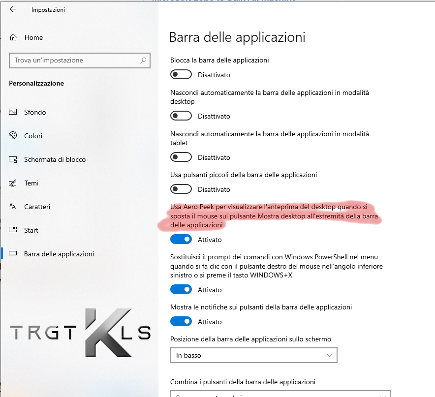 - Attiva Usa Peek per visualizzare in anteprima il desktop…. opzione disponibile nella sezione di destra.