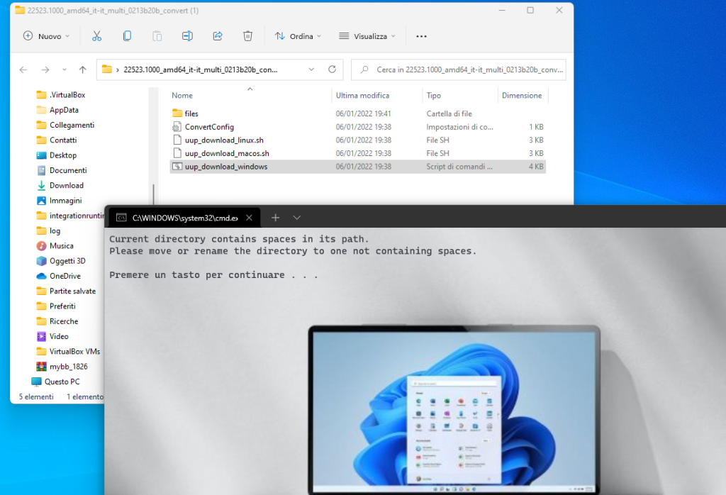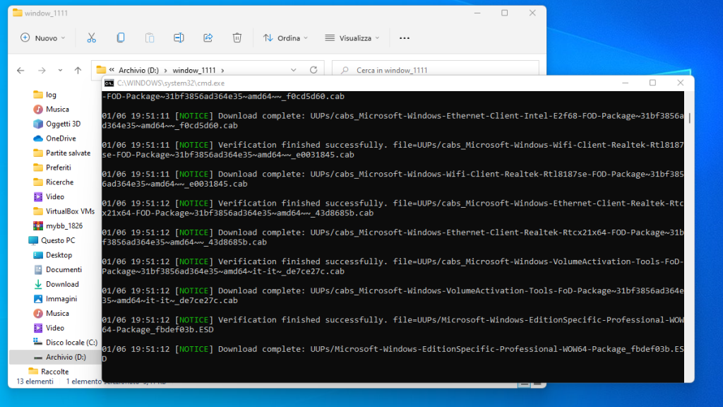 Apri la cartella ed esegui il file della riga di comando uup_download_windows.cmd.
