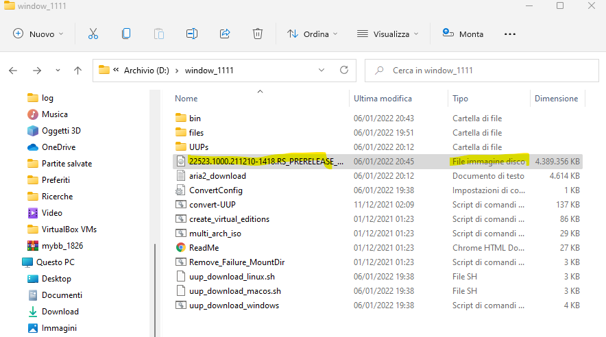 l'immagine ISO si trova nella cartella in cui è stato decompresso l'archivio ZIP. Immagine già pronta di Windows 11 Insider Preview 22523.1000 (rs_prerelease) amd64. Dopo aver creato un'immagine ISO di Windows 11 o Windows 10, è possibile creare un'unità USB avviabile per iniziare l'installazione pulita.