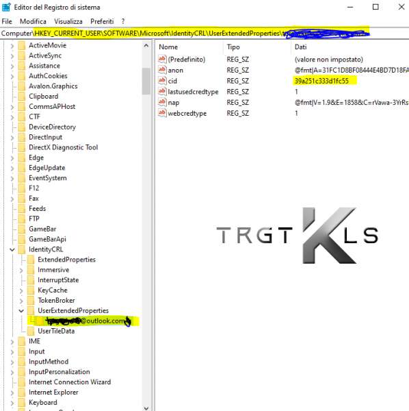 HKEY_CURRENT_USERSoftwareMicrosoftIdentityCRLUserExtendedProperties