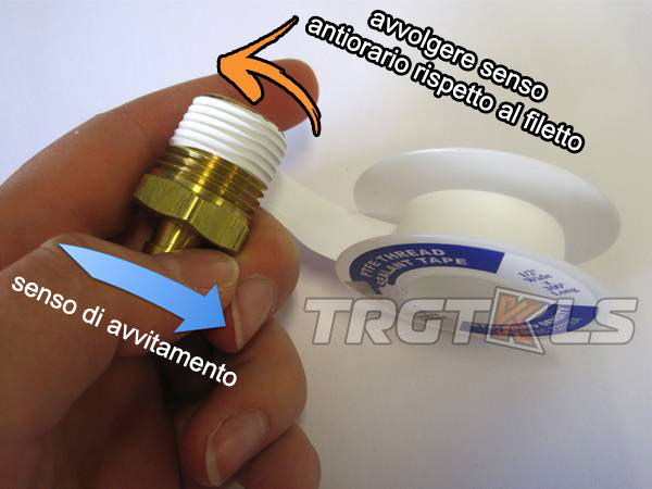 Il teflon deve essere applicato in senso antiorario rispetto al filetto; cosi che mentre avviti, contemporaneamente si avviterà anche il teflon.