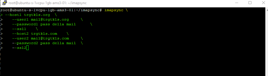 Nella directory digita imapsync per abilitare il trasferimento e inserisci i comandi di sotto per avviare il trasferimento.