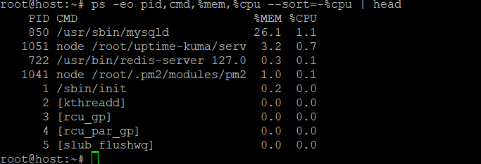 ps -eo pid,cmd,%mem,%cpu --sort=-%cpu | head