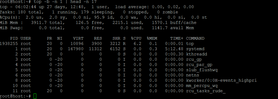 Per elencare un numero specifico di processi e uscire dopo aver visualizzato l'output: