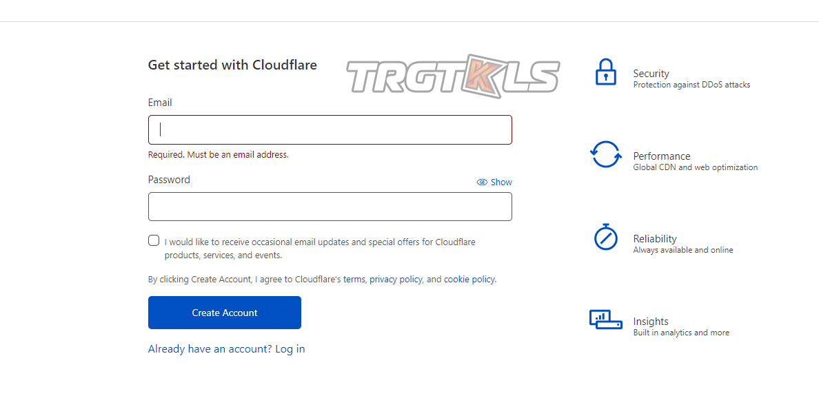 Accedi al sito Cloudflare e fai clic sul pulsante "Registrati".