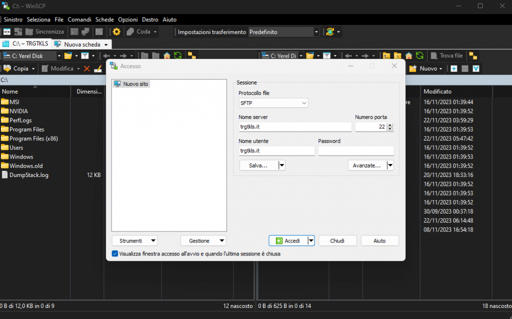 Configurazione ed il primo accesso di WinSCP
