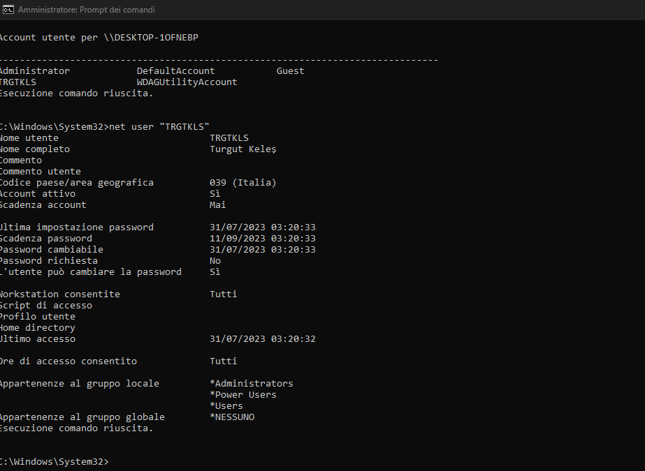 - net user "nomeutente"
