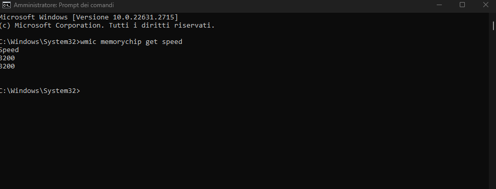 • Passaggio n. 4: Nella pagina del prompt dei comandi, digita wmic memorychip get speed e premi Invio.