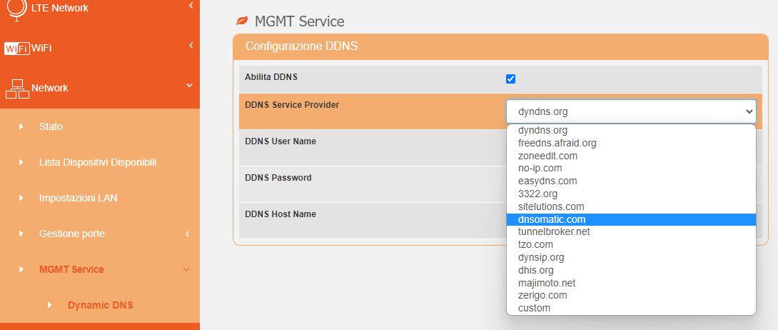 Altri provider DDNS elencato nella foto;