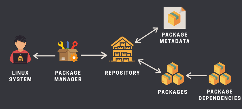 In parole più semplici, un gestore di pacchetti è uno strumento che consente agli utenti di installare, rimuovere, aggiornare, configurare e gestire pacchetti software su un sistema operativo. Ubuntu fornisce il software tramite repository. I repository contengono pacchetti software di diverso tipo. Hanno anche file di metadati che contengono informazioni sui pacchetti come il nome del pacchetto, il numero di versione, la descrizione del pacchetto e il nome del repository ecc.