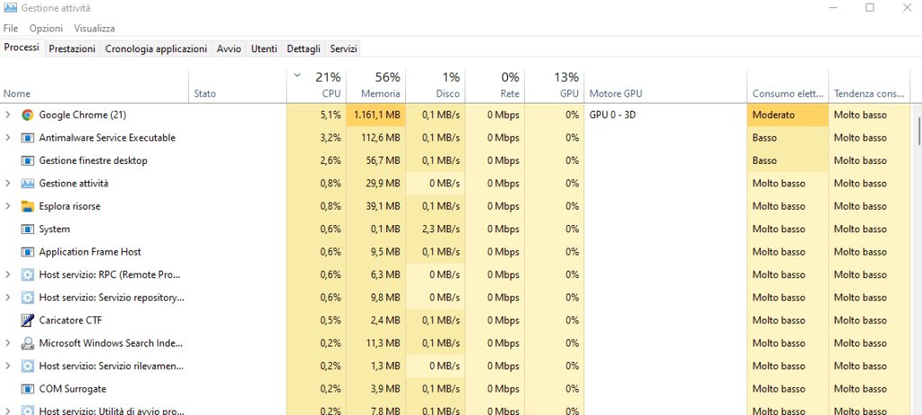 CPU, nota anche come processore, elabora i comandi del software e consente l'esecuzione del software. In altre parole, più comandi invia un software, maggiore è l'utilizzo della CPU. L'utilizzo elevato della CPU è normale se stai utilizzando questo un software o un gioco, ma se stai riscontrando una CPU elevata nell'utilizzo standard mentre quasi non fai nulla, c'è un problema. Il valore della CPU utilizzato dalle applicazioni nella pagina Task Manager, che puoi aprire usando la combinazione di tasti Win + X e selezionare Gestione Attività. Nell'utilizzo standard, la CPU massima dovrebbe essere compresa tra il 20% e il 60%. Se è in esecuzione un software o un gioco che richiede una potenza di elaborazione molto più elevata, può essere dell'80% o addirittura del 100%. Vediamo come puoi ridurre questo consumo eccessivo: