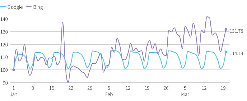Mozilla ha testato Bing per un po' per sostituire il motore di ricerca predefinito. Considerando che l'accordo tra Google e Mozilla scadrà alla fine dell'anno, sembra ragionevole che Microsoft agisca in fretta. Secondo le notizie di Reuters, il nuovo Bing è stato esposto a un afflusso di utenti dal giorno in cui è stato reso disponibile con il supporto dell'intelligenza artificiale. Al 19 marzo, il motore di ricerca di Microsoft ha guadagnato il 15% in più di utenti istantanei rispetto al leader del settore Google.
