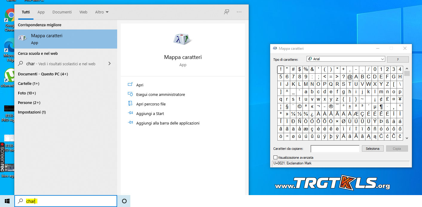 Puoi trovare un set di caratteri completi digitando; Charmap su esegui.