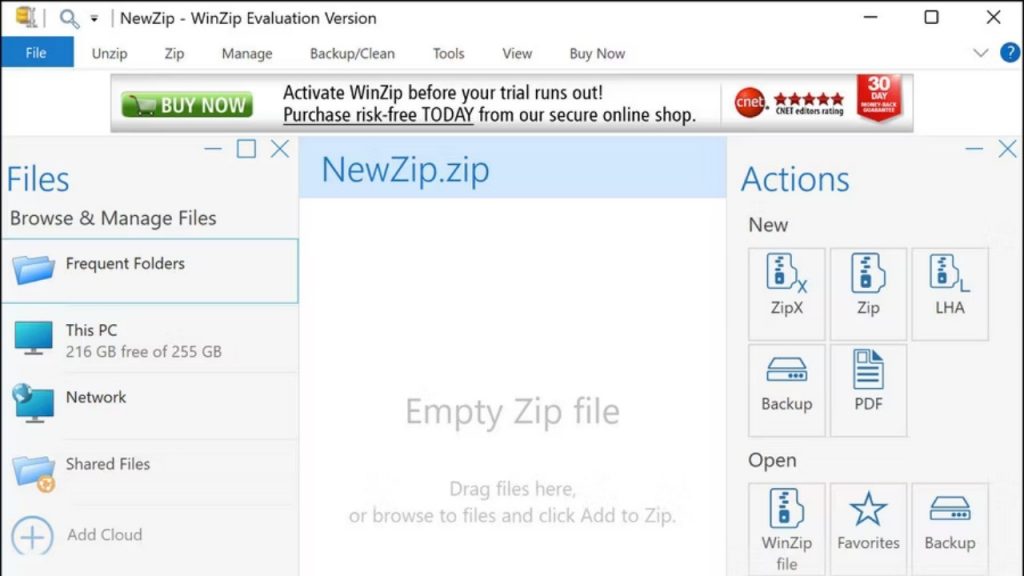 Come suggerisce il nome, WinZip viene spesso utilizzato per aprire file ZIP. Tuttavia, può anche aprire molti altri formati, inclusi RAR, 7z, CAB e ISO. Con la sua semplice interfaccia, WinZip ti consente di aprire istantaneamente i tuoi file RAR a seconda della velocità del disco che stai utilizzando.